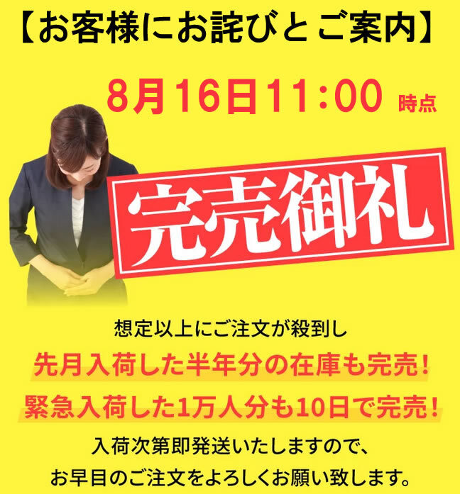 あまりに特典が充実したキャンペーンで注文殺到しているせいか、すぐ「完売」に😢